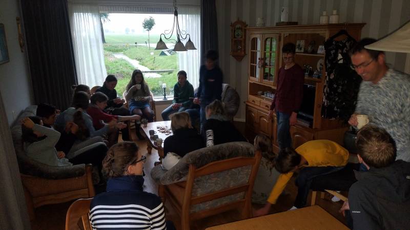 Ontvangst met warme chocomel na een natte fietstocht.