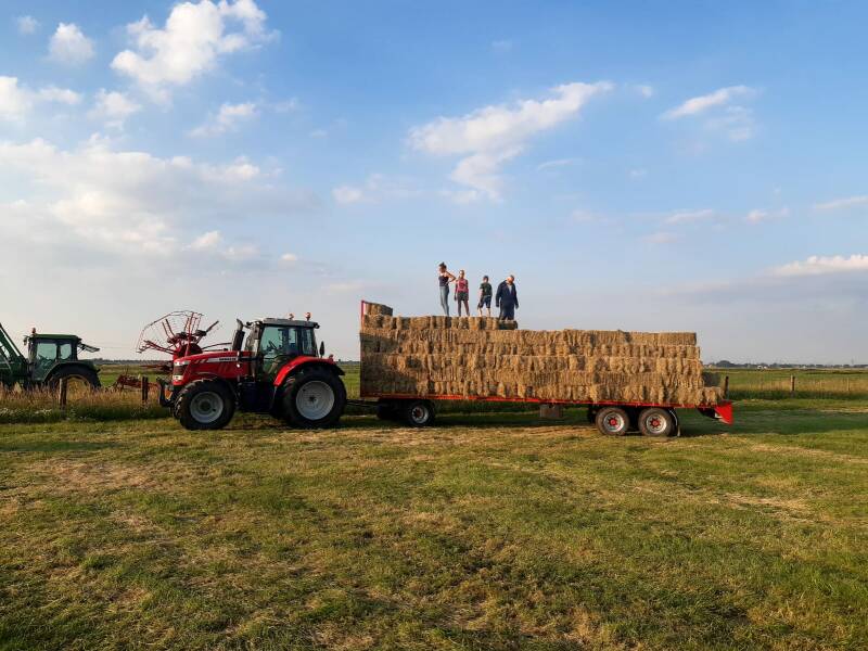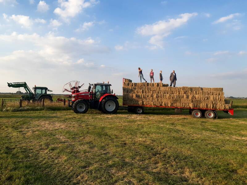 Goed weer om te hooien. Kleine hooibaaltjes. Goed gelukt.