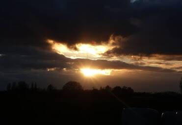 Koeien weer voorzien van een lekkere maaltijd, Mooie zonsondergang en onze toekomst.