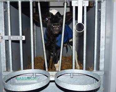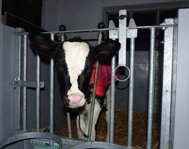 Normaal wordt een kalf geboren met een lichaamsgewicht van gemiddeld 40 kilo. Dit vaarskalf woog met de geboorte 81 kg. Ze werd dan ook met de keizersnede geboren. Gelukkig maken de koe en het kalf goed. We hebben even snel aangepaste huisvesting gemaakt. Een eenlingbox was te klein voor dit kalf.