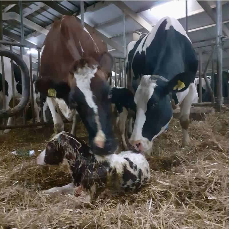 De eerste koe kalfde zelfstandig. De tweede koe had hulp nodig.