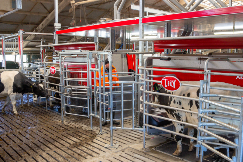 Op ons bedrijf hebben wij ongeveer 200 melkkoeien. Zij verblijven in de ligboxenstal. In de zomerperiode gaan de droge koeien en jongvee naar buiten en in de winterperiode blijven zij de gehele dag op stal. Tot voorjaar 2025 werden de koeien tweemaal per dag, ’s ochtends en aan het einde van de middag melkkoeien gemolken in de 2 x 10 stands zij aan zij-melkstal. Nu worden de melkkoeien gemolken met melkrobots. De koeien kunnen zelf bepalen wanneer zij gemolken worden. De hoeveelheid melk per koe wordt geregistreerd dagelijks via de melkrobots en 4-wekelijks via de melkcontrole. Eén keer per 4 weken vind er melkcontrole plaats. Het rantsoen van onze melkkoeien bestaat uit kuilgras, mais en aanvullend veevoer. Het hele jaar door wordt dit rantsoen aangevuld met brokjes dat zij in één van de krachtvoerboxen krijgen. Meer over koeien en jongvee zie hieronder.