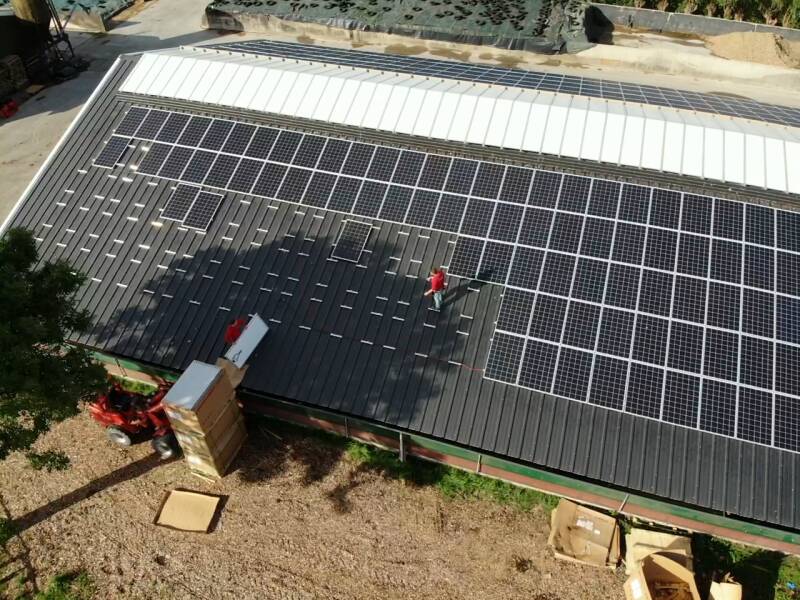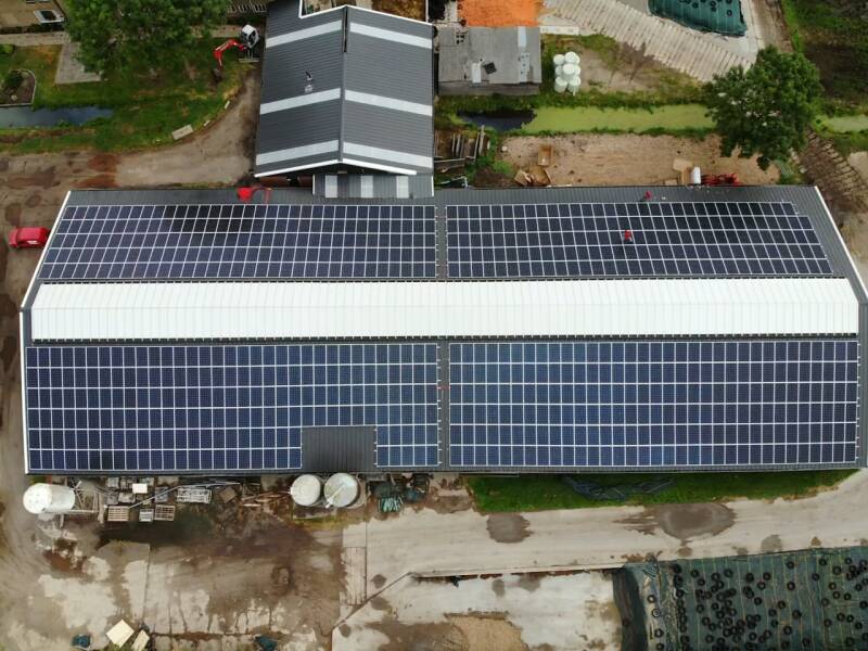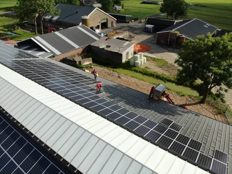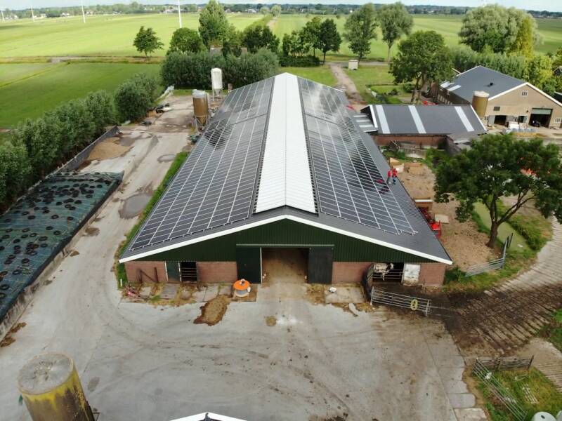 Sinds kort liggen er "zonnepanelen" op de daken van de ligboxenstal en veldschuur.