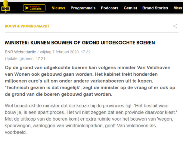 Minister: Kunnen bouwen op grond van uitgekochte boeren