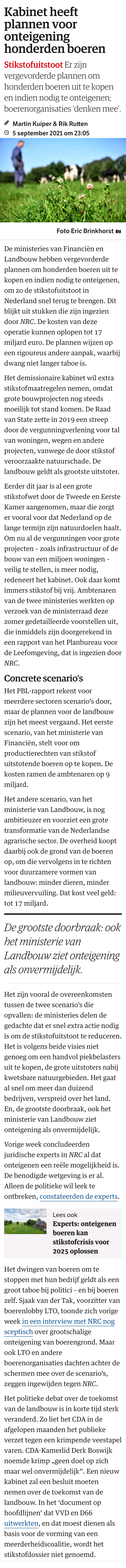 Boeren nu gaan uitkopen en straks voedsel kopen uit de Verwegnistan. Niet efficiënt geproduceerd en lange afstanden om te importeren. Dat is pas goed voor het milieu. Meer CO2 en stikstof. Maar ja... dat is over de grens.