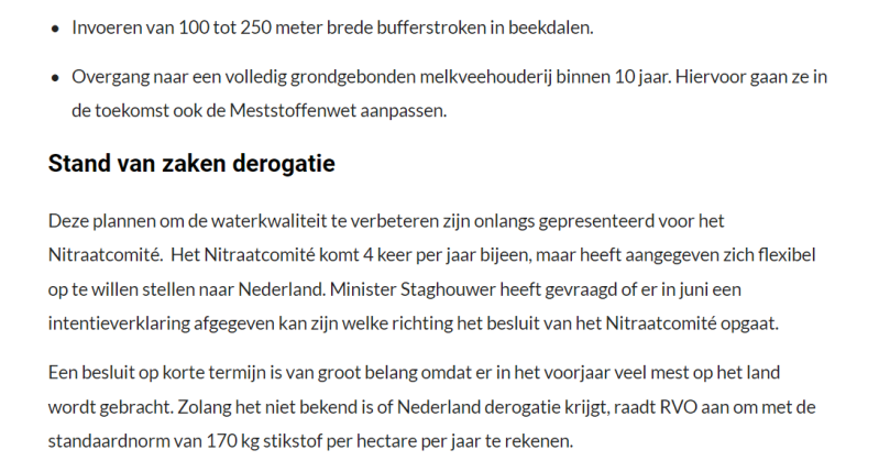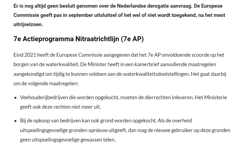 Wat een onbetrouwbare overheid (EU) hebben we toch!!! Als het mestseizoen in september is afgelopen, krijgen we pas uitsluitsel of we derogatie verleend krijgen. Hier kan niet mee gewerkt worden.
